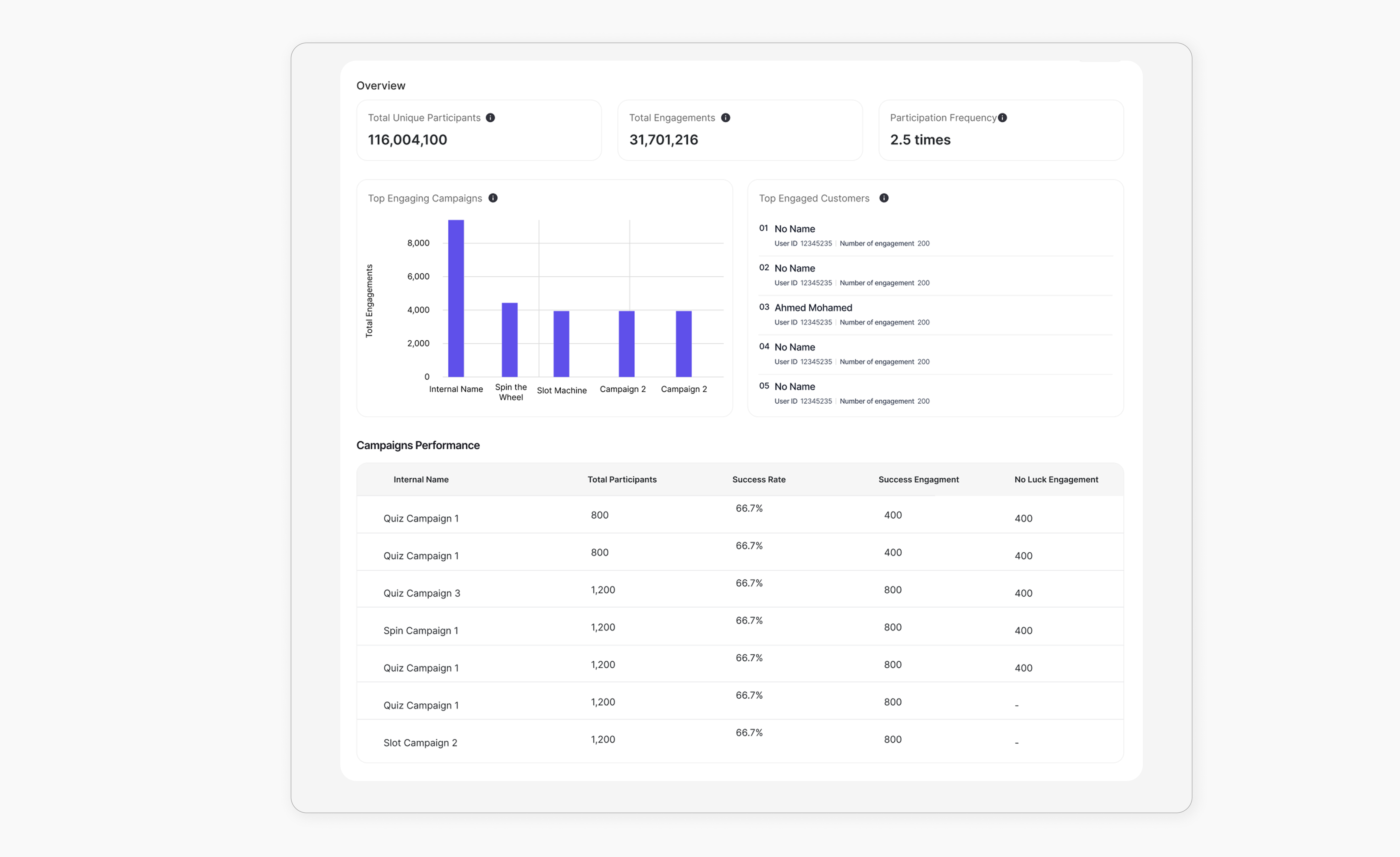 - Customer Participation List & Activity Logs: Gain full visibility into customer engagement with detailed participation lists and real-time activity logs.