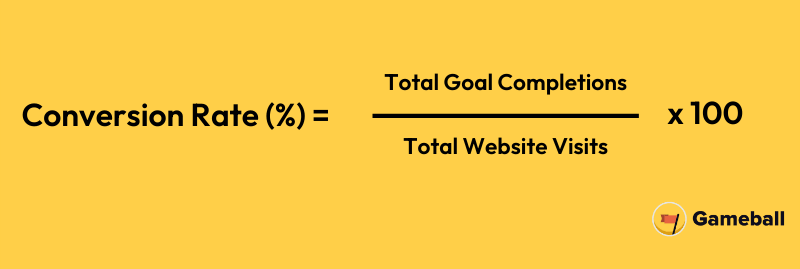 Super easy. Take your total number of conversions (the desired action you decide) and divide that by the total number of visitors. That's your conversion rate that we'll be working on improving together.
