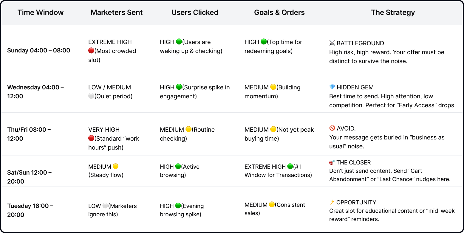 Category behavior varies dramatically. Beauty shows balanced growth, electronics is deal-driven, sports requires strategic timing for high-value purchases. Your strategy should match your category reality.