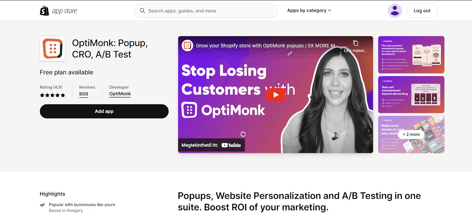 Optimonk is a CRO tool designed to boost conversion through the use of on-site messages (pop-ups) and retargeting campaigns. With Optimonk, you can create customizable pop-ups, bars, and other forms of messaging to engage visitors at key moments in their shopping journey, and maximize the potential revenue you can generate through them.