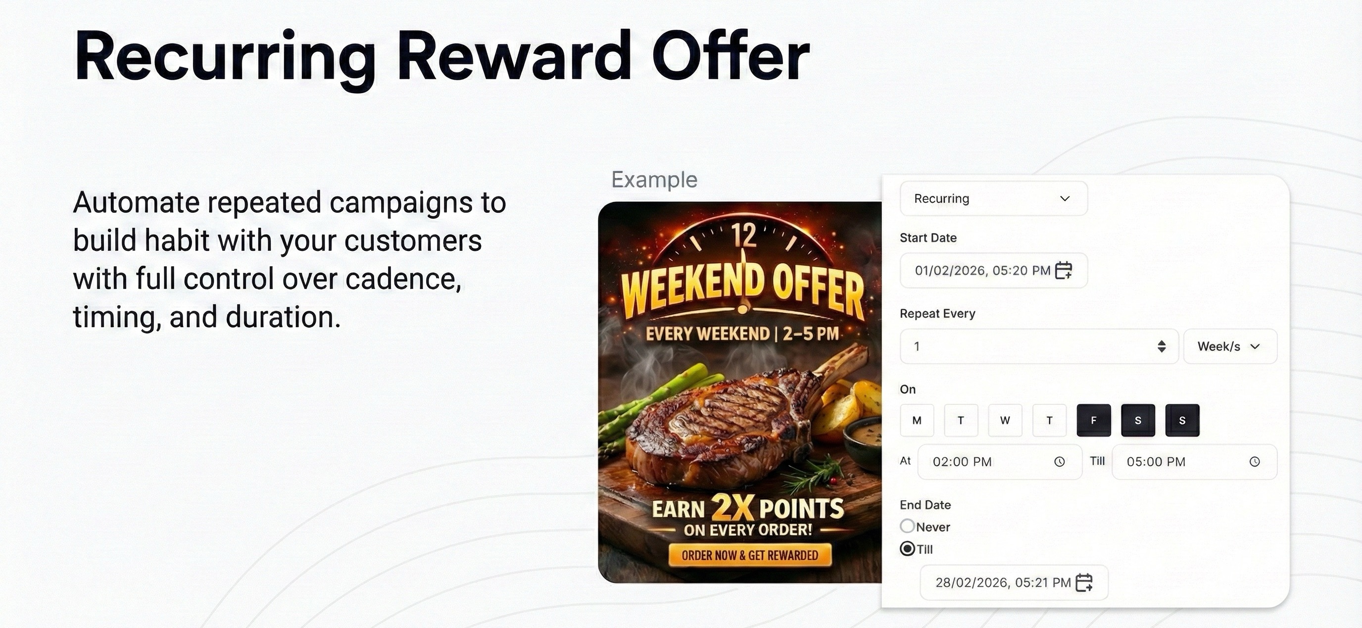 Many loyalty campaigns are inherently time-based: daily offers, weekly rewards, monthly incentives. Yet historically, running these campaigns meant repeated manual setup—and room for human error.