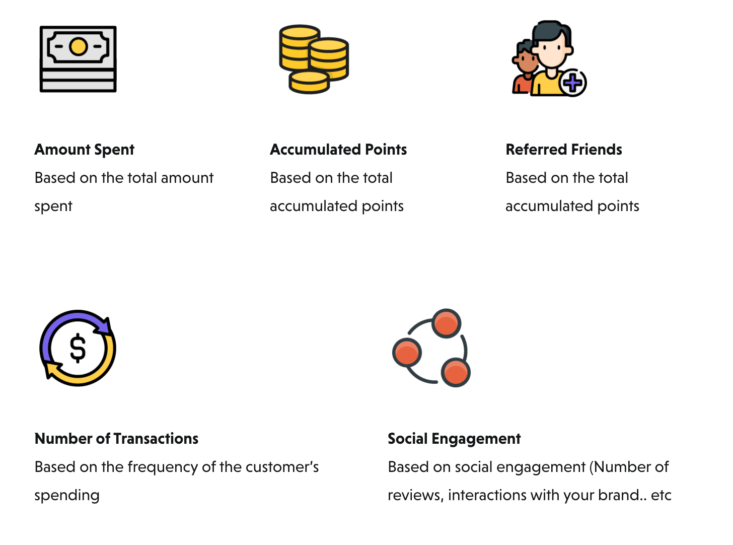 As a merchant, you’ll need to classify your customers into groups. Those groups are usually based on the number of points earned or money spent by customers.