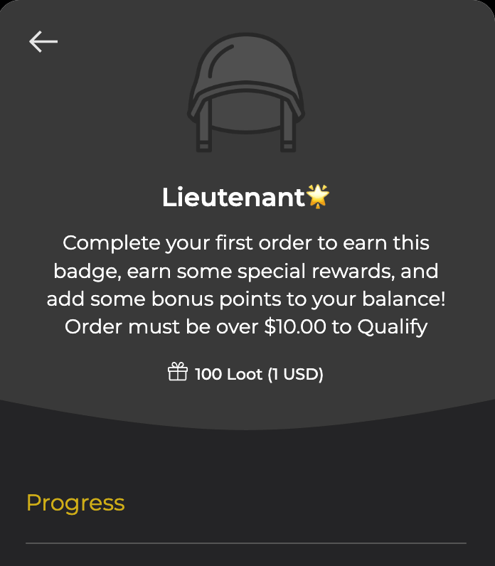 Customers can gain points (called loots by Wargames Delivery) by signing up for the loyalty program, sharing on social media, breaking personal records with order amounts, completing their first order, and their second, and their third…you get the idea.