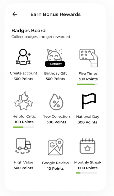 Segmented points systems let you align reward intensity with effort—review, refer, shop, or engage—and give users feedback at each milestone.