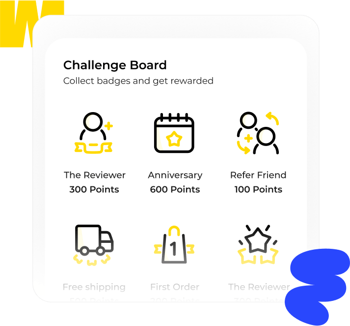 Built‑in progress bars, badges, and levels show customers exactly where they stand—and what’s next.