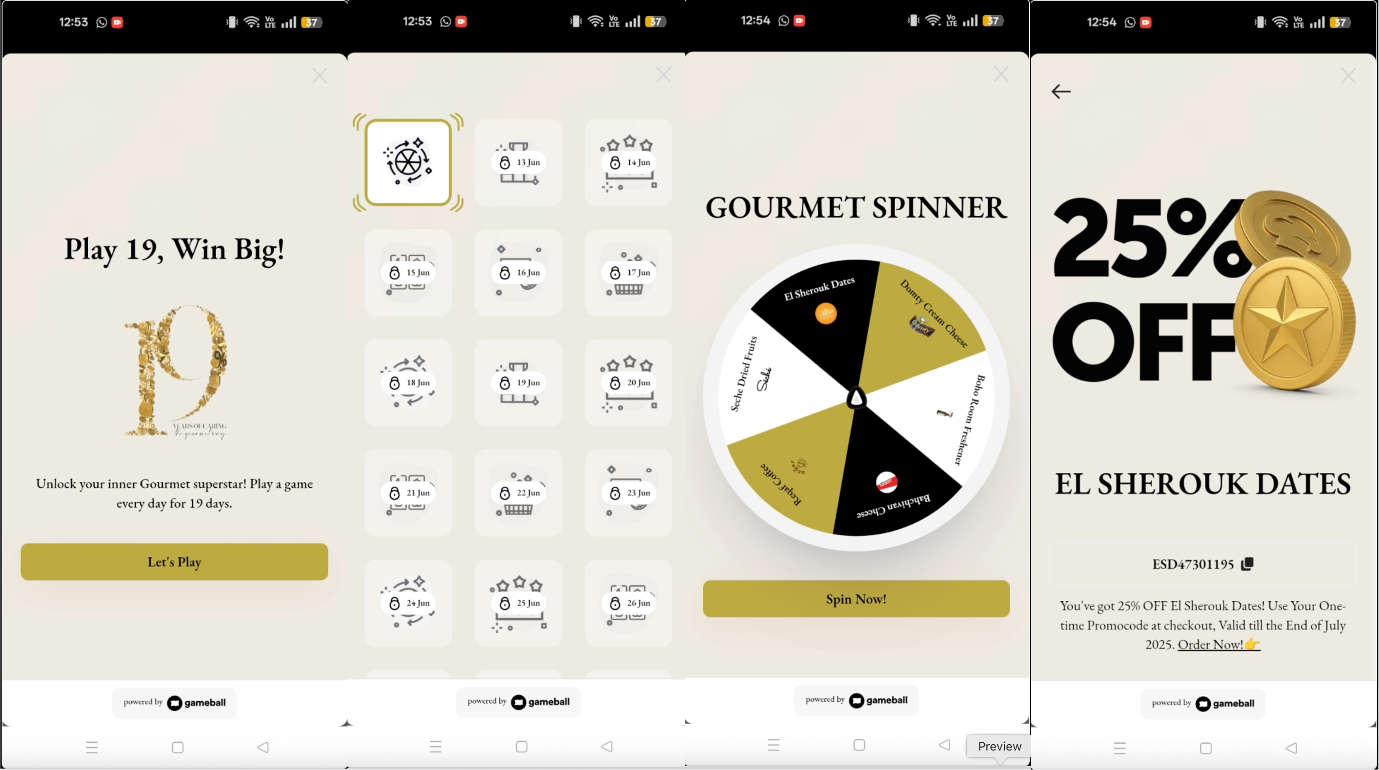 For Ramadan, Gameball designed a calendar-based campaign that delivered a new gamified experience every day of the month. Instead of repeating a single mechanic, the calendar served as a container for multiple formats—Scratch & Win, Spin the Wheel, Match Cards, Quizzes—keeping the experience fresh and preventing fatigue. The visual calendar structure reinforced daily check-ins and built a sense of progression, turning loyalty participation into part of customers’ Ramadan routine rather than a promotional afterthought.