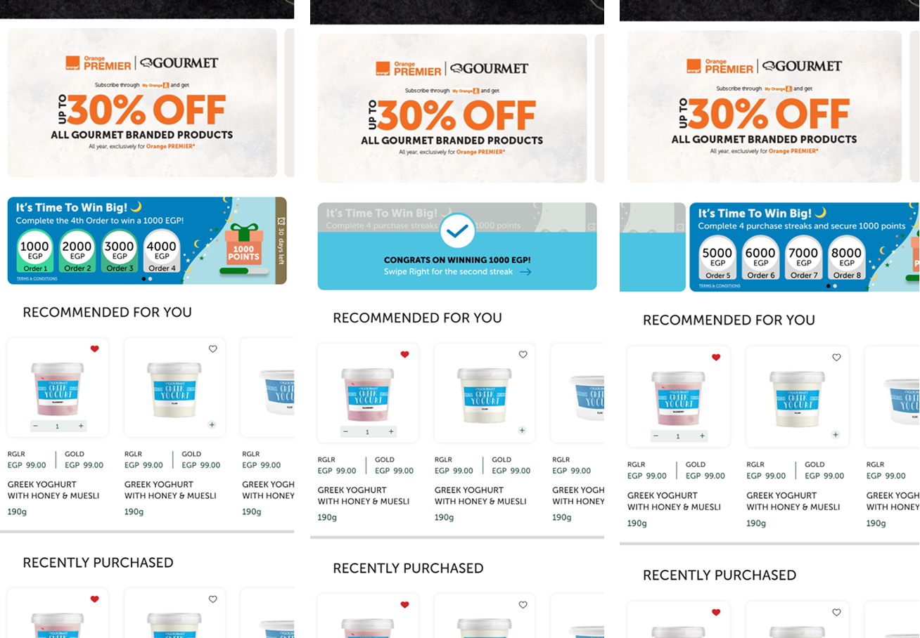 Rewards were intentionally varied and calibrated to also serve as marketing for partner brands on the Gourmet app—offering discounts and free products from brands like Domty, Nutra Health, Organic Nation, and Luff. This ensured perceived value remained high while protecting margins and maintaining Gourmet’s premium positioning.