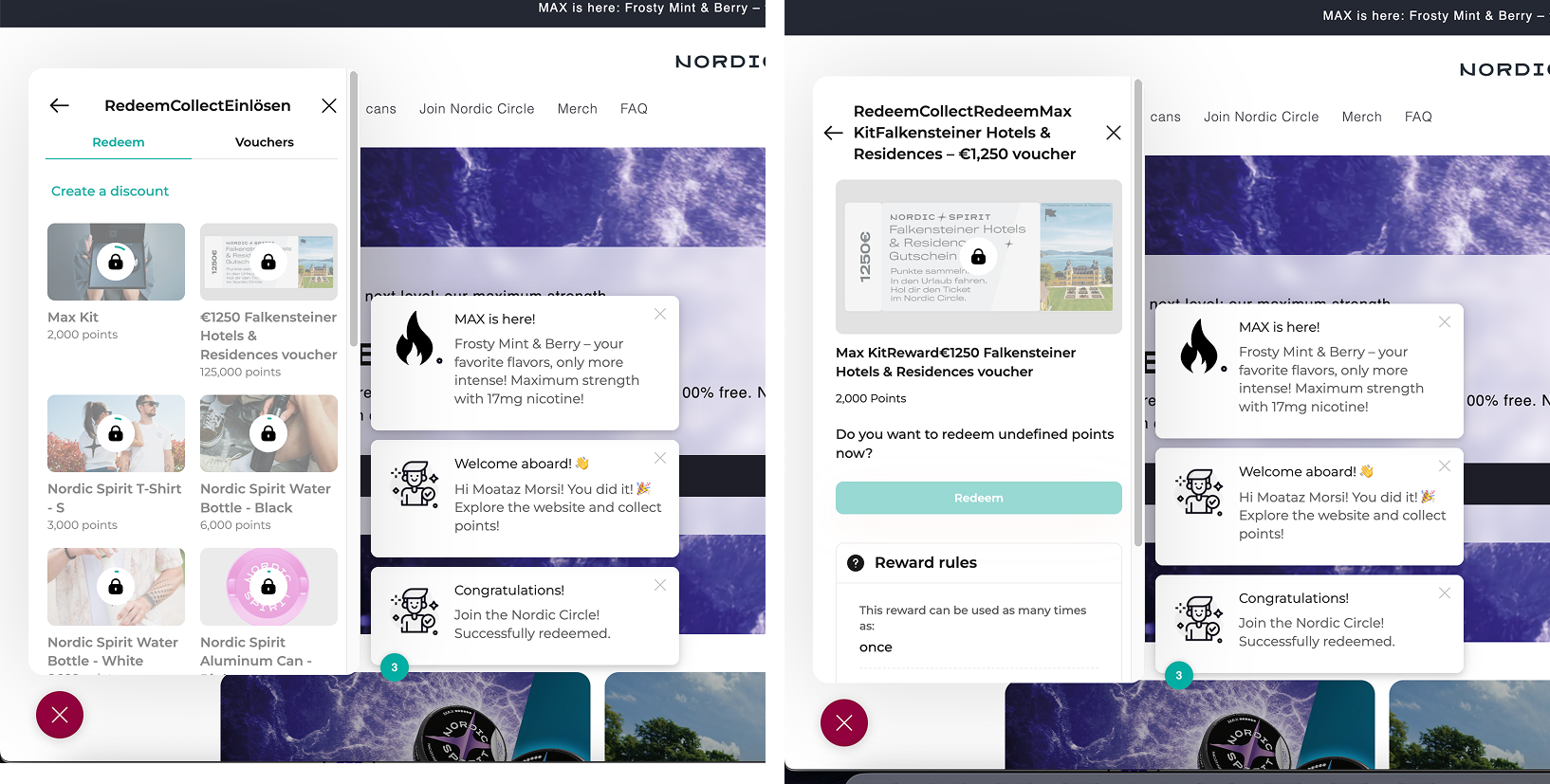 Gameball transformed the age verification process into a rewarding "Quest" that instantly unlocks a free kit, turning a legal hurdle into a high-value incentive for data capture. By integrating a scan-to-earn feature and deploying the entire interface in German to ensure a trusted local experience, they successfully converted anonymous retail habits into a verified and highly engaged digital VIP club.
