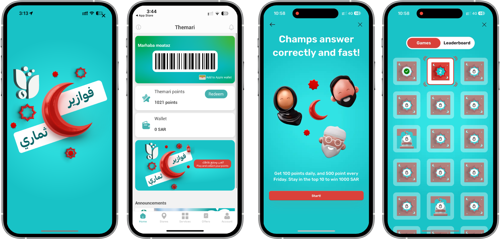 - Daily Quiz (Fawazer Themari): 30-day Ramadan trivia with leaderboard, daily point rewards, and weekly SAR 1,000 cash prizes for top players.