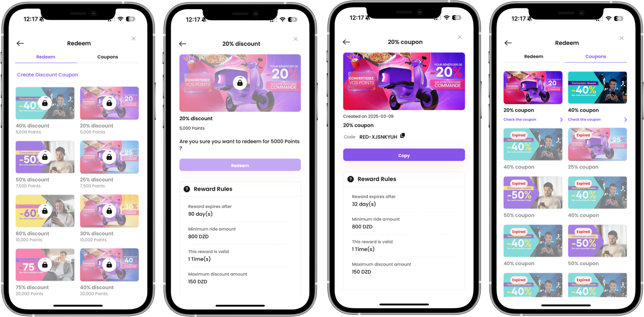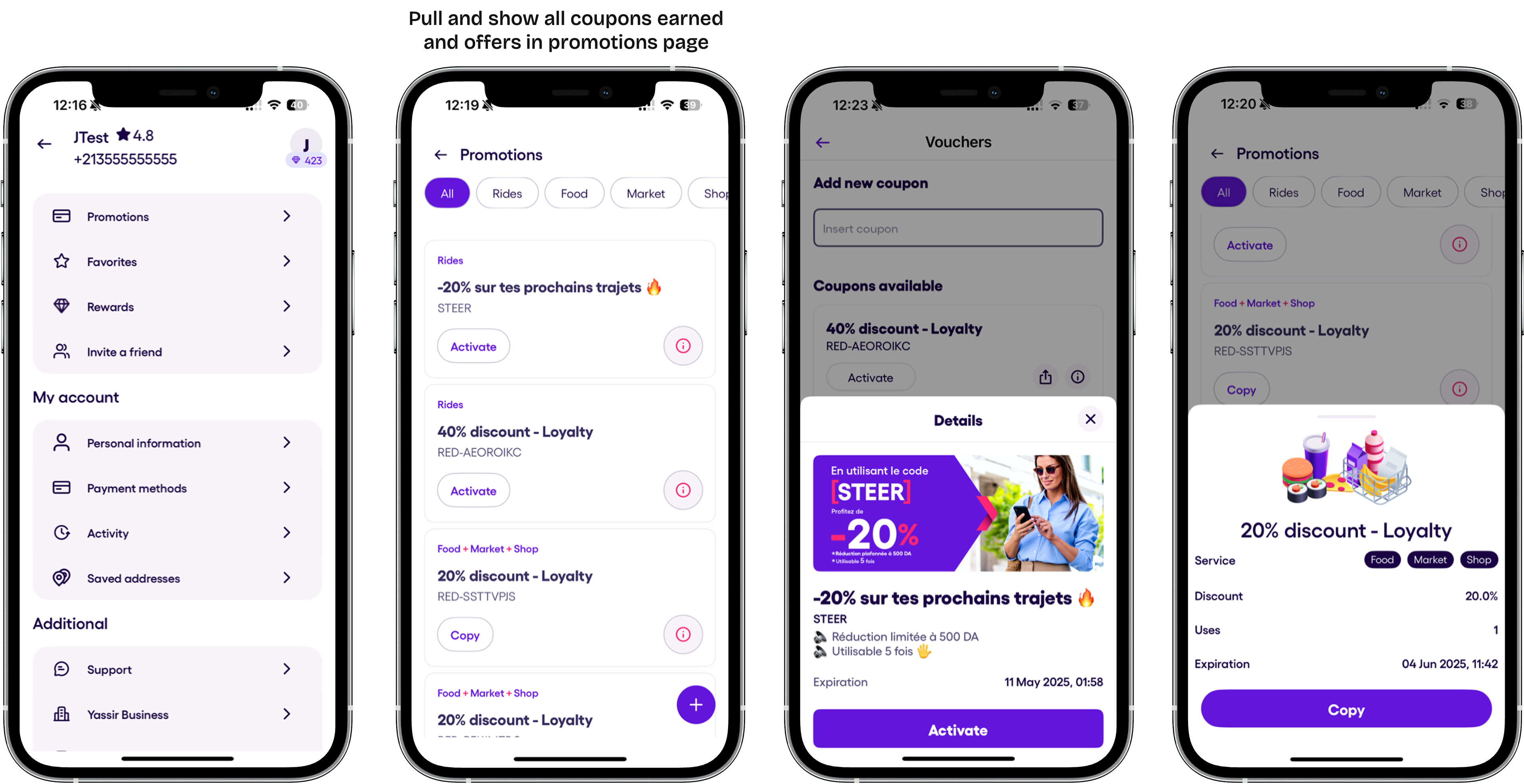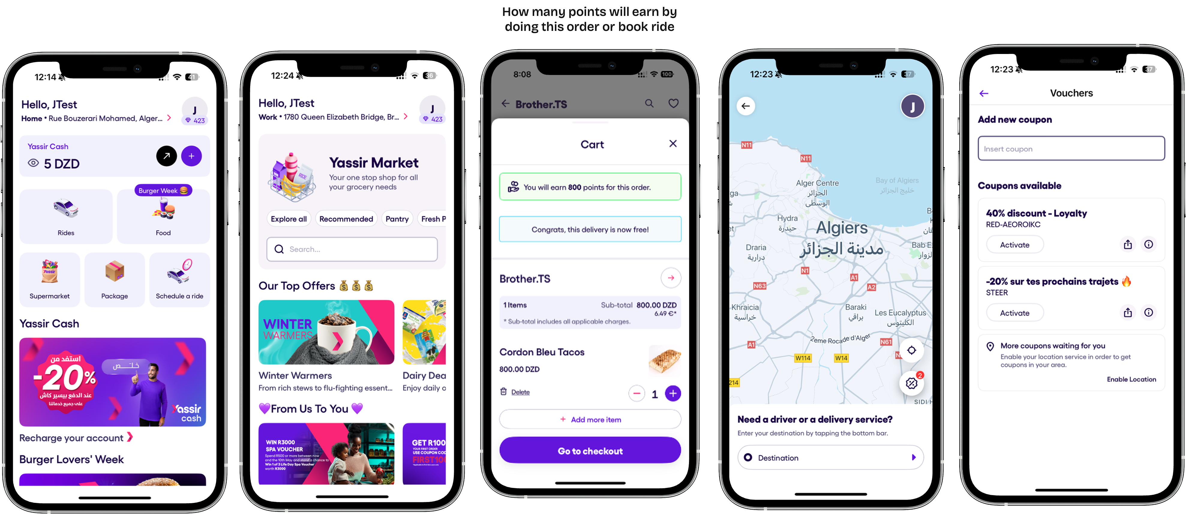 - Coupon & Wallet Integration: Yassir Wallet & Coupons connection for seamless earning and redemption‍