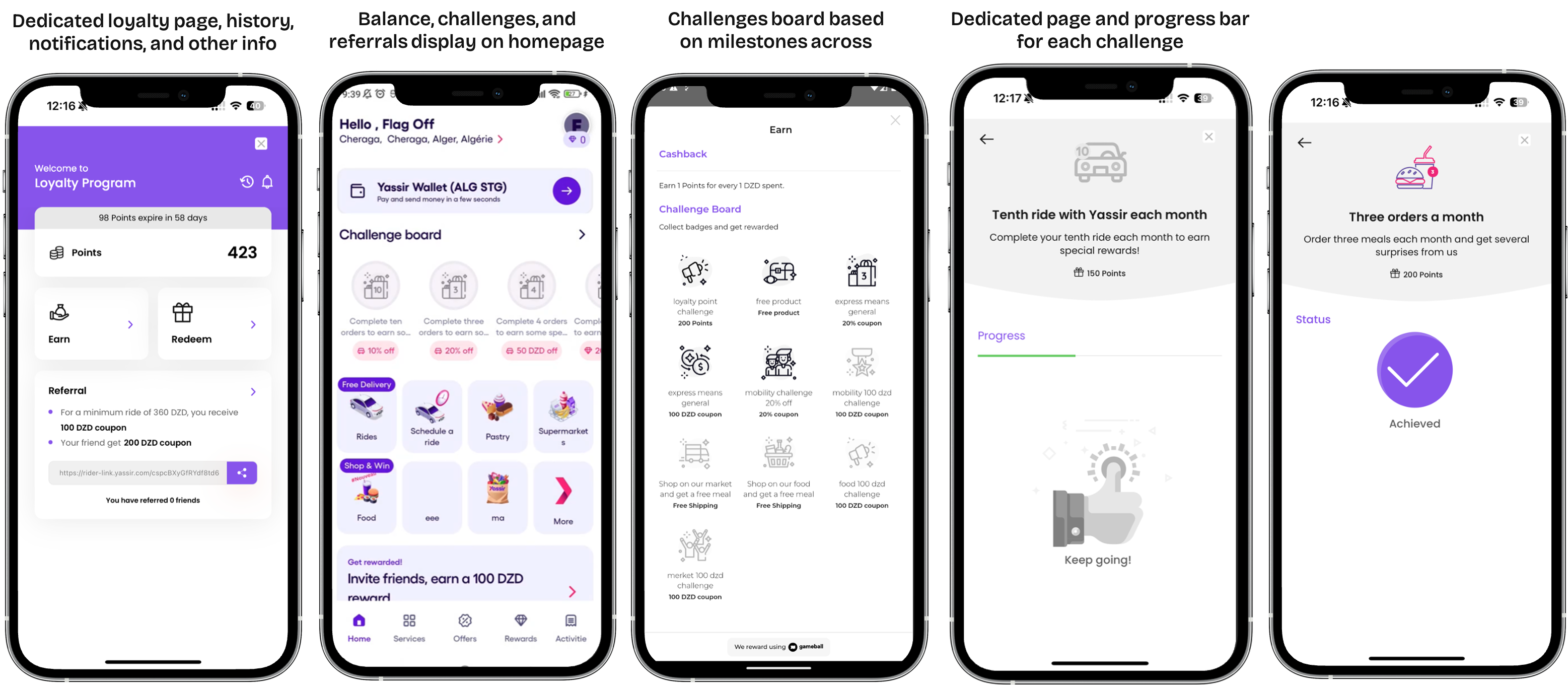 After a year of stalled internal development, Yassir’s in-house loyalty and referral program couldn’t scale across six countries, three service verticals, and multiple currencies and languages. European loyalty providers lacked the flexibility and cost-effectiveness the team needed.