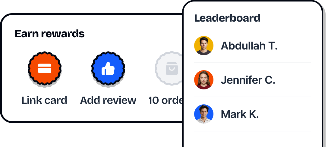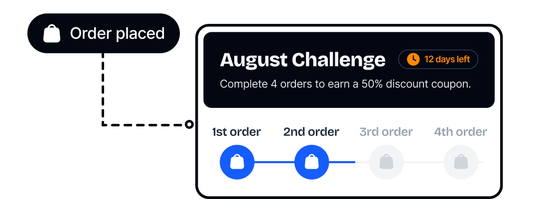 Encourage customers by highlighting their progress and proximity to the next step. Badges, Progress Bars, and leaderboards motivate them to advance.