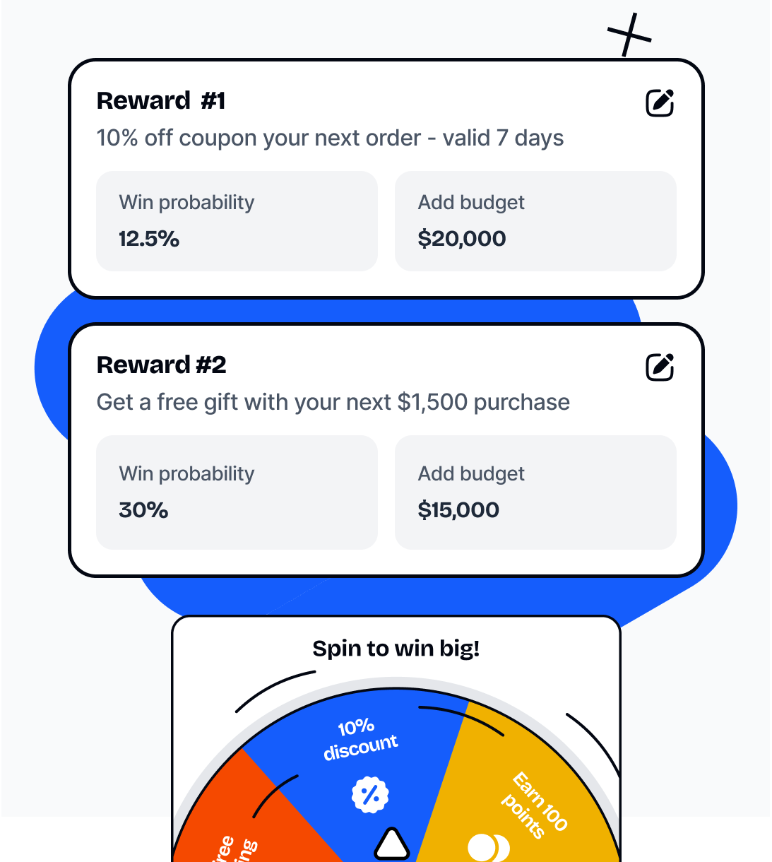 You decide the probability of winning. Cap rewards to fit your campaign budget and stay in control of your margins. Reward them with vouchers, discounts or points from your existing loyalty program.