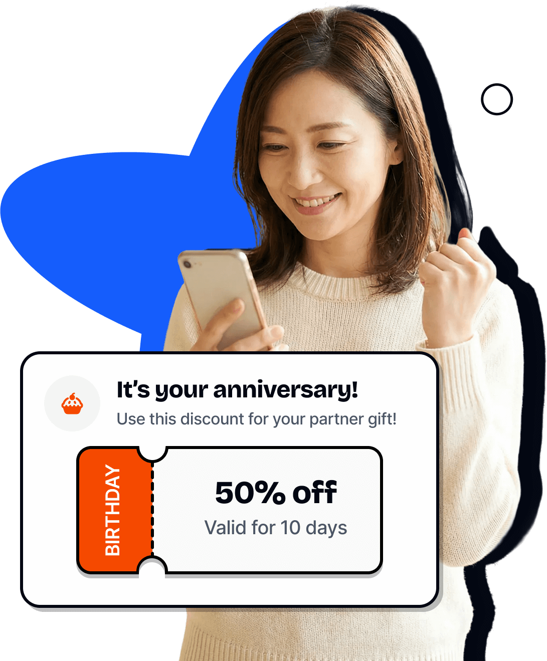 Make use of all the dates you've collected and celebrate those personal moments. Go beyond your basic birthday and anniversary rewards, any meaningful date is eligible for celebration!
