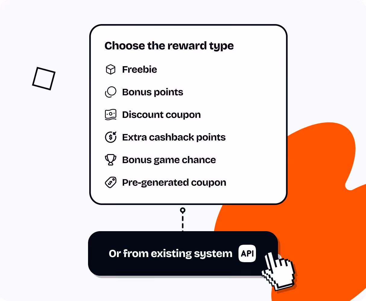 Reward customers your way with points, discounts, free products, free shipping, coupons, partner vouchers, or wallet credits synced with your backend.