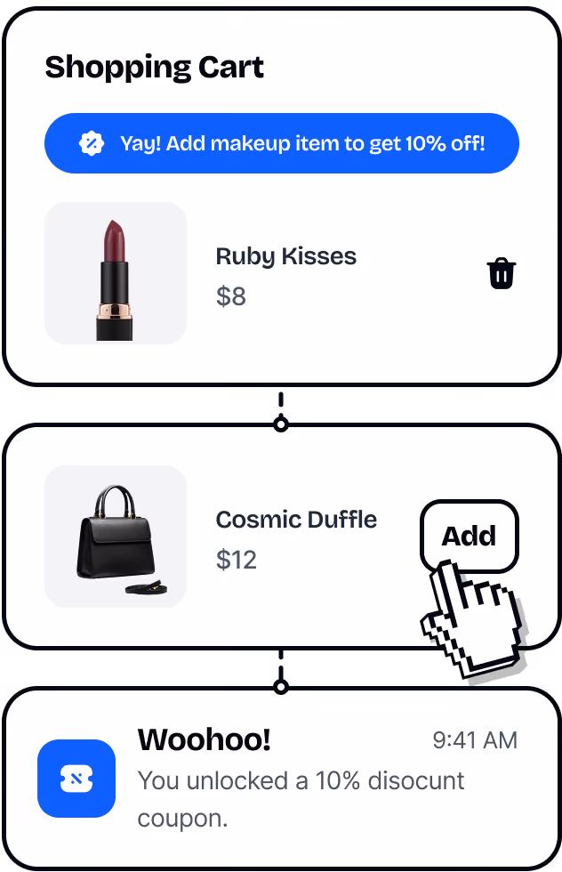 Auto-apply the right promo based on customer profile and order details, such as cart value, spend thresholds, SKUs, or loyalty-tier perks; instantly, without code.
