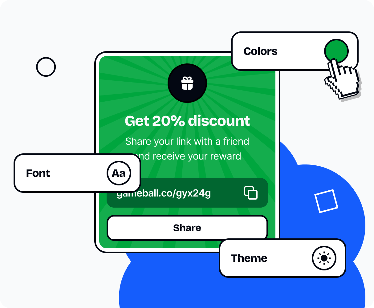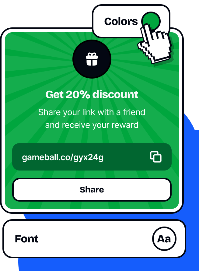 No dev time needed. Drop in our pre-built referral widget with a customizable UI that fits your brand out of the box.